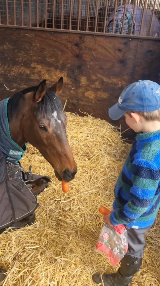 Having retired from a successful career as a racehorse Cornborough has gone on to win rosettes as a show horse with his new owner.
